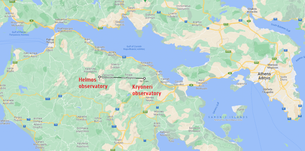 Dal Kryoneri Observatory, situato nei pressi di Atene, è stato inviato un potente beacon laser verso la sonda Psyche della NASA. Benché esso non trasportasse dati, questo impulso è stato ideato per essere puntato con una precisione tale da essere agganciato dall’esperimento DSOC a bordo di Psyche, il quale in risposta ha inviato un segnale di ritorno alla Terra. Quest’ultimo è stato captato dall’Helmos Observatory, situato ad una distanza di 37 km dal primo osservatorio, su di una cima montuosa.