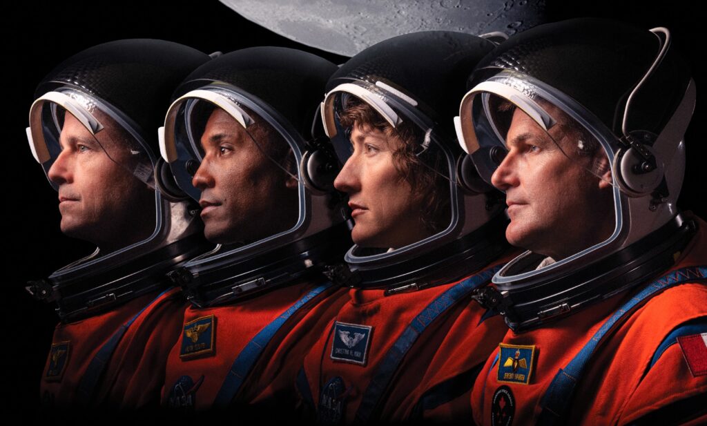 A bordo della capsula Orion ci saranno gli astronauti statunitensi Wiseman, Glover e Koch, e il canadese Hansen. Pur rimanendo in un’orbita terrestre molto ellittica e senza inserirsi in quella lunare come avvenne per Apollo 8, effettueranno un unico flyby (sorvolo ravvicinato) della Luna passando a circa 7.500 km dalla superficie. Questa traiettoria consentirà alla navicella di tornare verso la Terra senza dover accendere il propulsore principale, proprio come avvenne per Apollo 13 nel 1970.