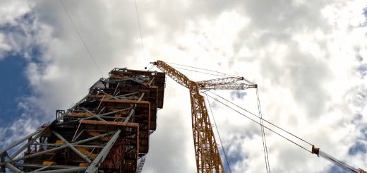 Con l’aggiunta dei moduli 6 e 7 ora il Mobile Launcher 2 ha raggiunto l’altezza di 84 metri